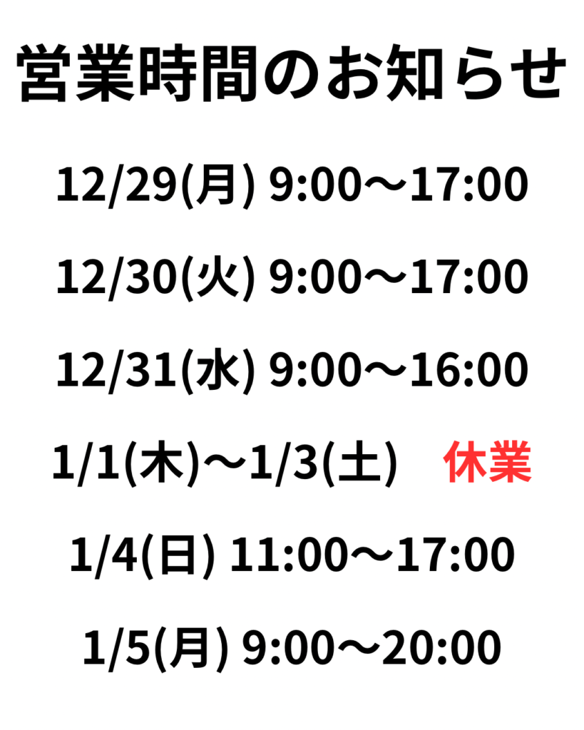 2025年 年末年始営業時間のお知らせ